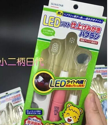 今年流行的是SUNSTAR新款LED兒童電動牙刷,售價在人民幣240元左右。一套共含兩個刷頭+小鏡子+牙刷本體,特色就是含有LED燈,在刷牙的同時可以清楚看到牙齒。震動頻率9000次/分鐘,時間2分鐘,徹底清除牙垢。小刷頭適合6個月+,大刷頭適合2歲+。一個套裝滿足嬰兒~幼兒全階段使用,幫寶寶養成潔齒護齒的好習慣。