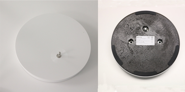 WiT的身材雖然十分"苗條",但是體重可不輕,足足4.7Kg。WiT的"底盤很穩",筆者估計底座有3Kg左右,這樣的設計也是為了支撐超長的燈桿。底座表面為乳白色,底部為黑色,有四塊弧形膠質貼片分散在底部,增加底座摩擦力。