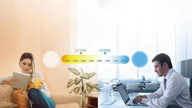 通過旋轉WiT的飛梭旋鈕,用戶可以手動調節燈光亮度和冷、暖色溫。開燈的情況下順時針可以提高亮度,逆時針則會降低亮度。此時按一下飛梭旋鈕可切換到色溫調節模式:順時針旋轉可以提高色溫(光線偏白色),逆時針旋轉可以降低色溫(光線偏黃色),色溫調整范圍為2700K~5700K。