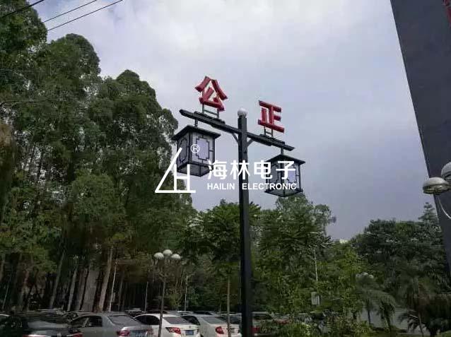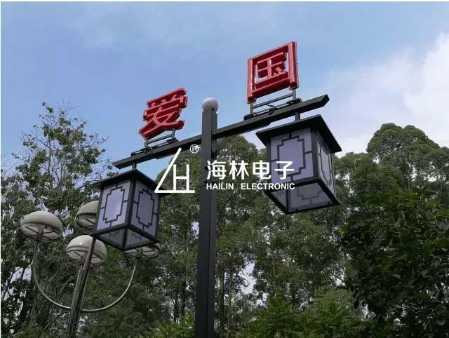 與原來的燈飾相比,這次安裝的燈飾更具中國風,還融入了社會主義核心價值觀二十四字的內容,讓人眼前一亮。