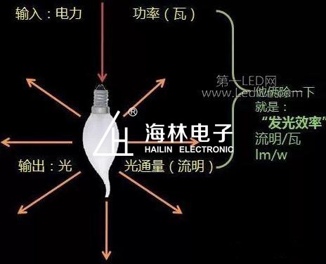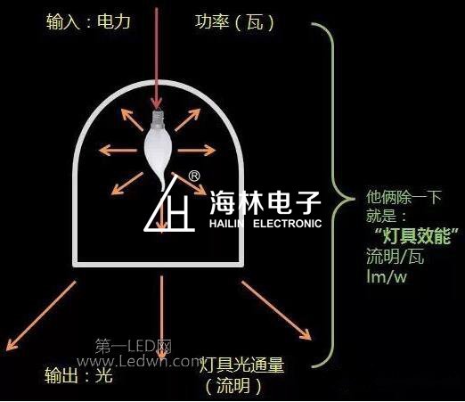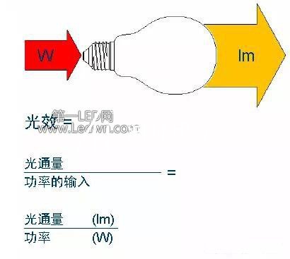 光源的發光效能(常簡稱為光效):發光體將電能轉化為可見光的能力,用光通量和功率的比值來衡量,單位是lm/w。